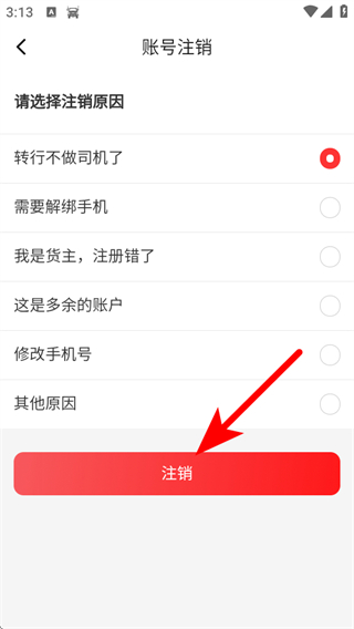 4、在注销原因选择页面,选择原因后点击注销,完成账号注销操作。