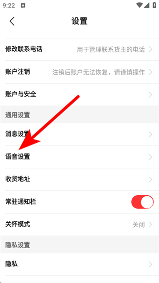 2、在设置页面中找到并点击语音设置,进入语音设置的页面。