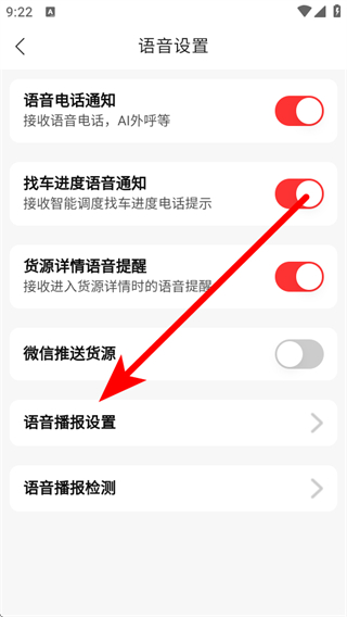 3、在语音设置页面点击语音播报设置,进入语音包配置页面。