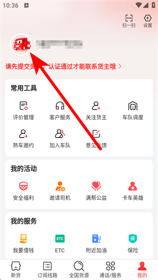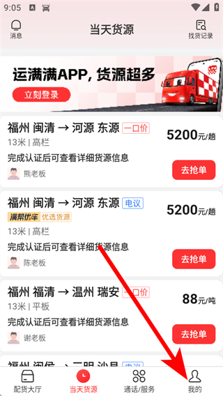 1、打开运满满,点击底部我的,进入个人功能操作页面。