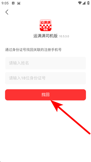 4、在该页面输入姓名和18位身份证号,点击找回,即可完成账号找回操作。
