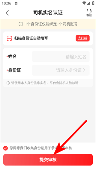 2、在我的页面点击头像区域,进入司机实名认证的信息填写页面。