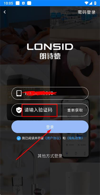3、在验证码输入框中填写收到的验证码,点击登录完成账号的登录操作。