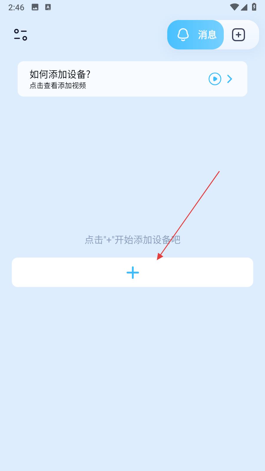 1、打开iCam365APP,点击界面中的+按钮,启动添加设备流程。