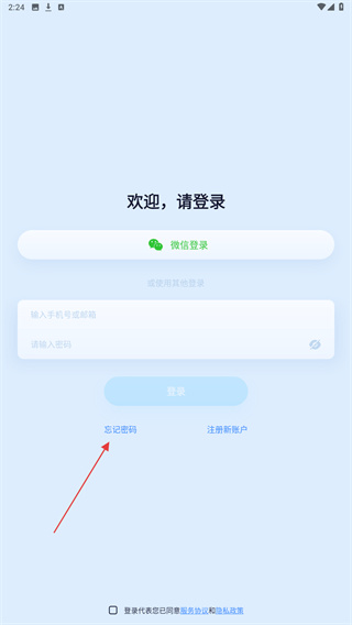 在app登录界面,点击右下角“忘记密码”,输入你注册的手机号,然后点击发送,收到验证码后填入,然后输入新密码,完成即可。