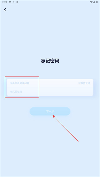 2、输入手机号、验证码后,再点击下一步的按钮。