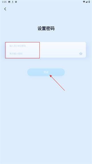 3、在设置密码的页面内,输入新密码后点击完成即可。