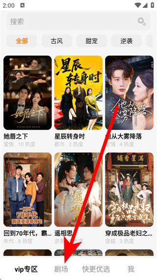 1、打开快更短剧,点击底部剧场,进入短剧场页面。