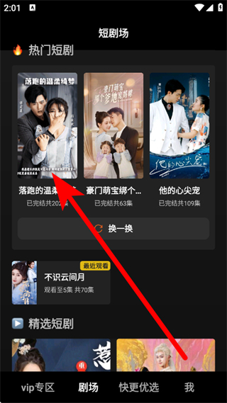 2、在短剧场的热门短剧区域,点击选择目标短剧,进入播放页面。