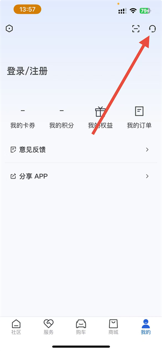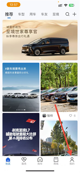 1、在别克app界面,点击底部我的选项,进入我的个人页面。