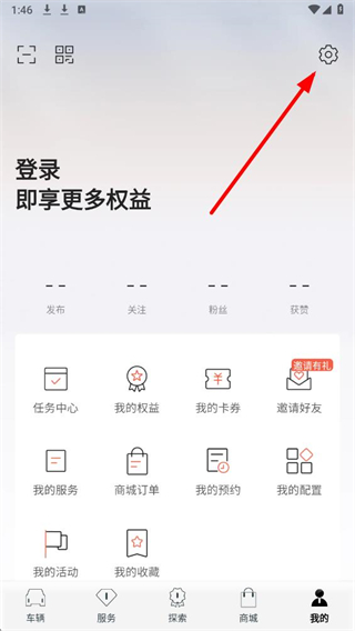 2、在个人页面,点击右上角设置图标,进入设置相关操作界面。