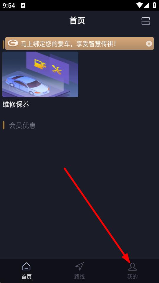 1、打开智慧传祺app,点击底部导航栏我的进入个人页面。