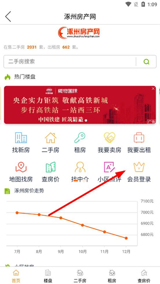 1、在涿州房产网界面,找到会员登录选项并点击,进入会员登录相关操作页面。