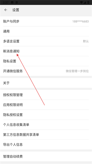 3、在设置界面里找到新消息通知选项,点击后进入新消息通知设置页面。