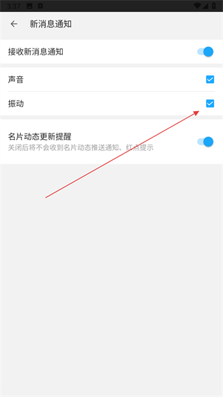 4、在新消息通知页面找到振动选项,点击其右侧的勾选框取消勾选即可。