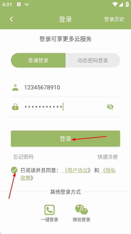 4、确认后阅读并勾选同意用户协议以及隐私政策后,点击登录即可使用。