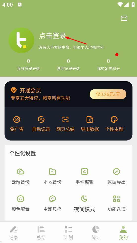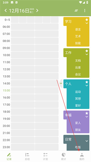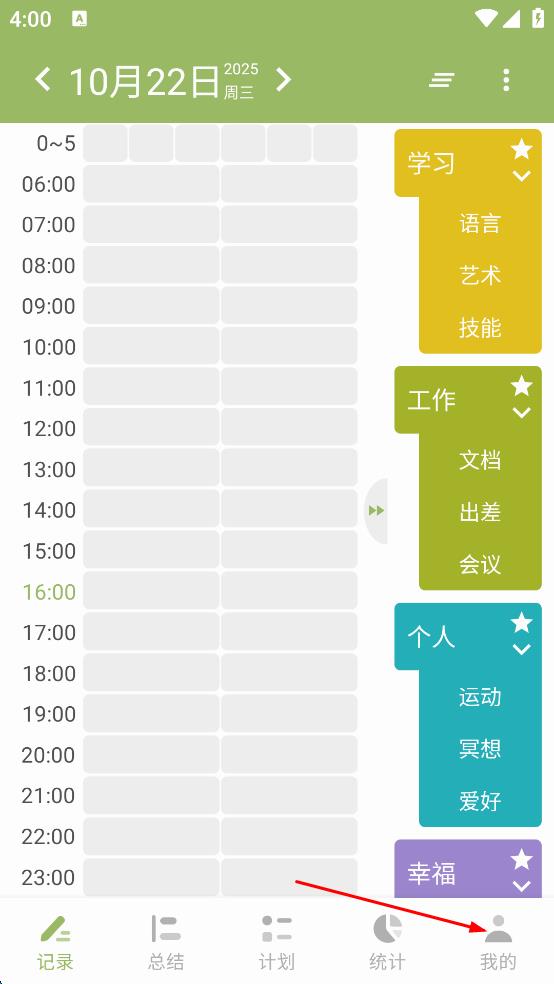 1、打开时间管理软件,点击右下角我的,进入个人页面。