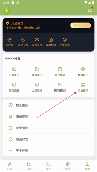 2、在个人设置页面中找到功能选项按钮,点击该按钮进入功能设置界面。