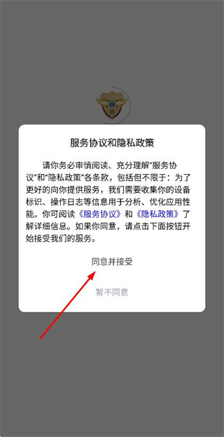 1、在使用协议隐私政策弹窗中点击同意并接受按钮,进入登录页面。