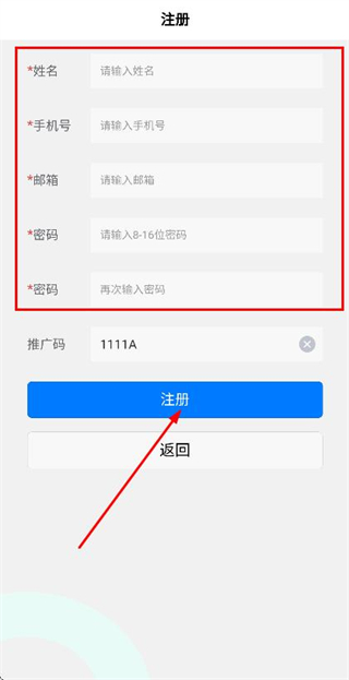 3、在注册账号页面填写信息后,点击注册完成注册操作。