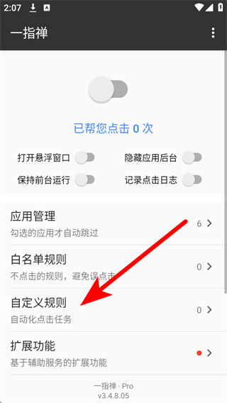 1、打开一指禅,在主界面中点击自定义规则,进入自定义规则页面。