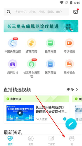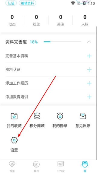 1、打开医者无界app首页,点击底部我的选项,进入个人中心页面。