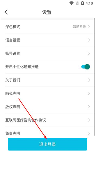 3、在设置页面底部,点击退出登录,即可完成账号退出操作。