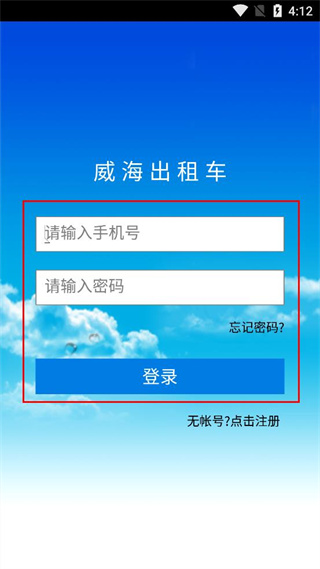 4、回到威海出租车登录界面,在对应输入框填写手机号和密码,点击登录按钮进入软件。