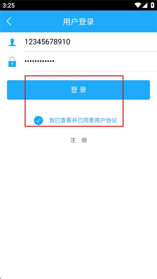 4、勾选我已查看并已同意用户协议选项,确认信息无误后点击登录按钮完成登录。