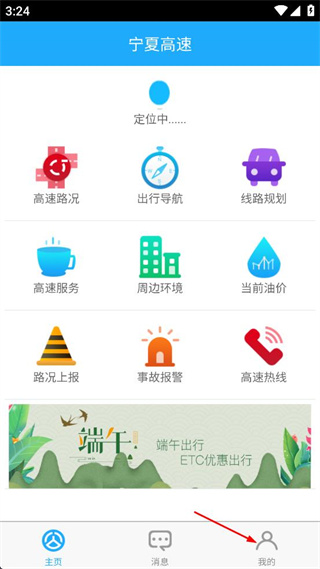 1、进入宁夏高速主界面,找到底部导航栏的我的选项,点击该选项进入对应的页面。
