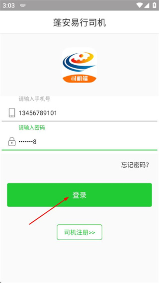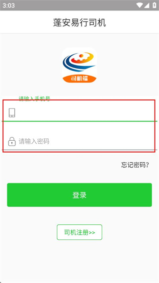2、进入蓬安易行司机端界面,找到对应的输入区域,准备填写手机号码和登录密码。