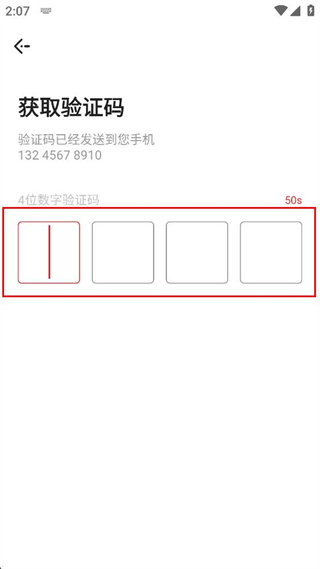 4、进入获取验证码页面,填写收到的4位数字验证码完成验证操作。