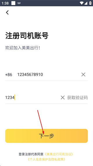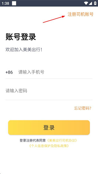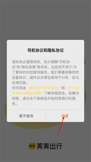 1、阅读司机协议和隐私协议内容,点击页面中的同意按钮进入账号页面。