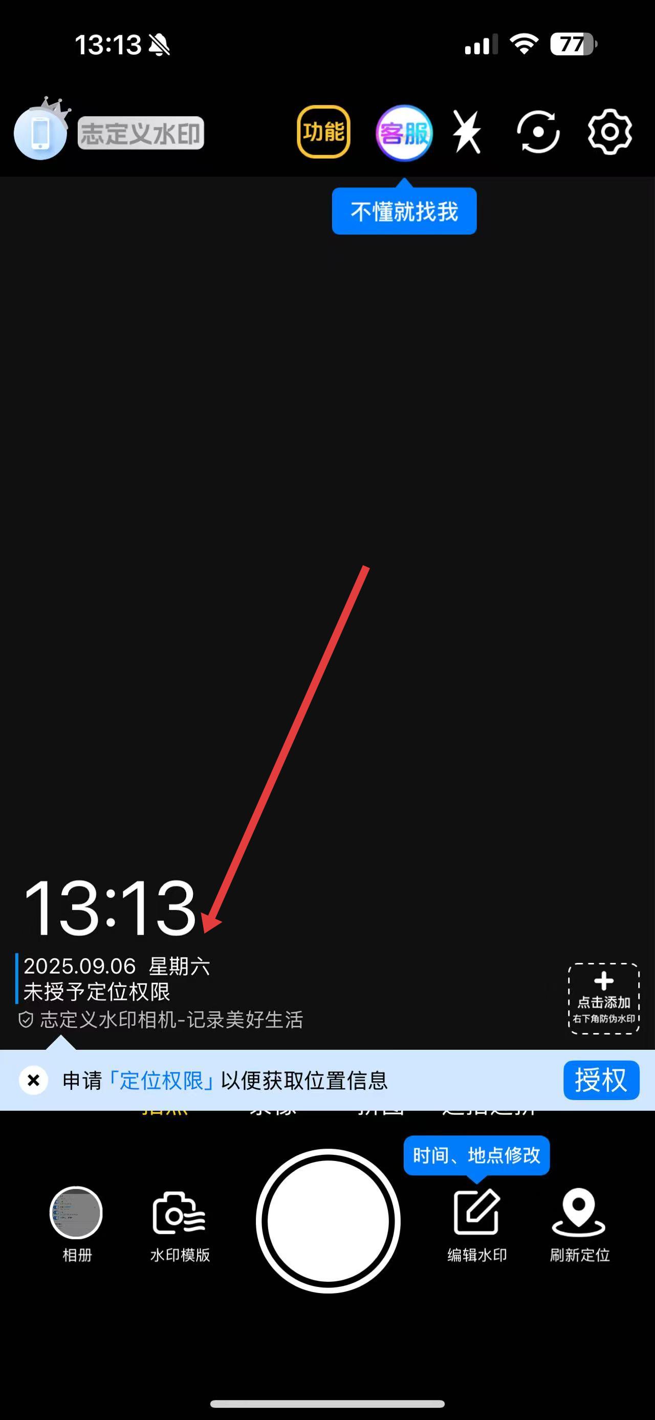 1、打开自定义水印相机,点击界面下方的编辑水印按钮。