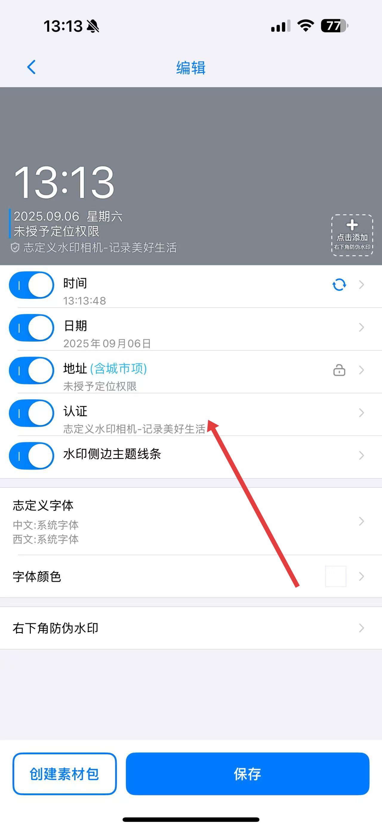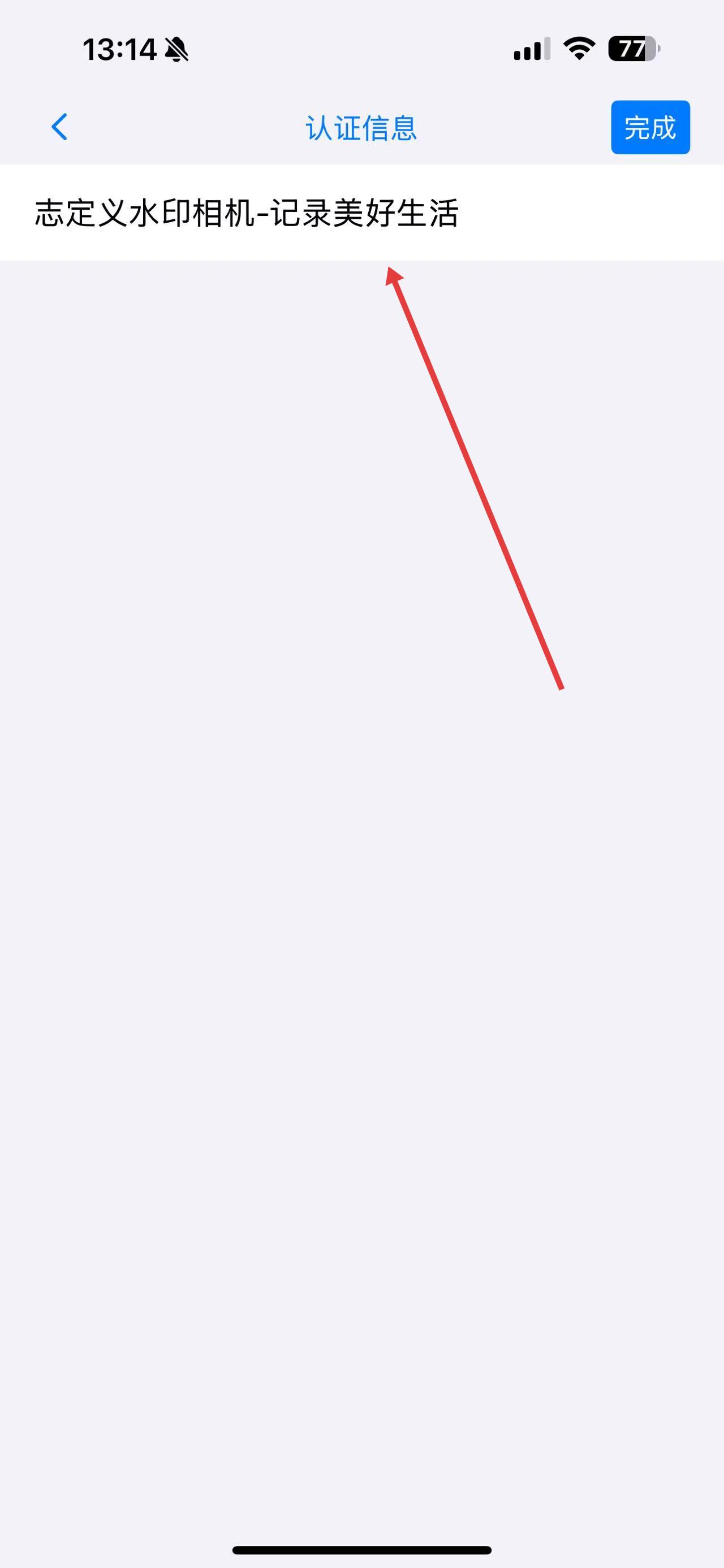 3、在认证信息编辑界面,输入想要设置的认证内容,比如志定义水印相机-记录美好生活。