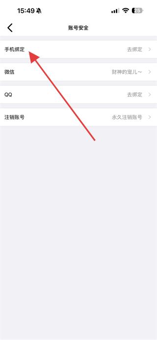 3、在个人信息页面点击账号安全,进入账号安全页面后点击手机绑定。
