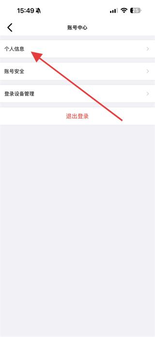 3、在账号中心页面,点击个人信息选项,进入个人信息设置页面。