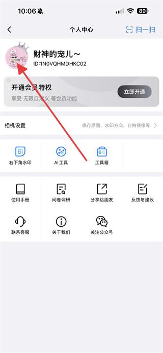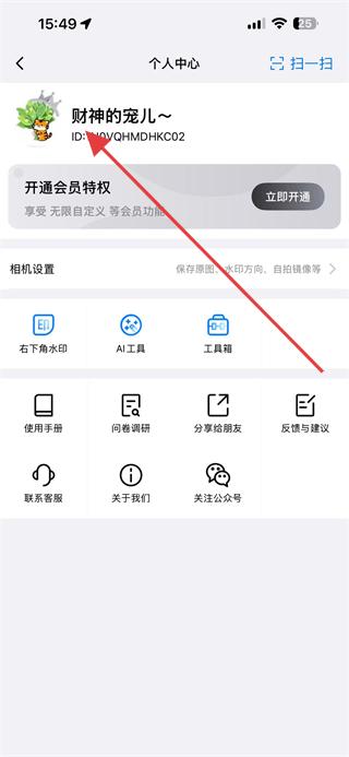 1、打开自定义水印相机app,点击左上角头像区域,进入个人中心页面。