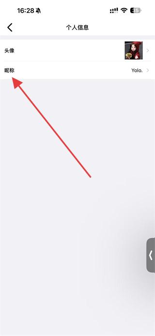 4、在个人信息页面,点击昵称选项,进入编辑昵称的操作页面。