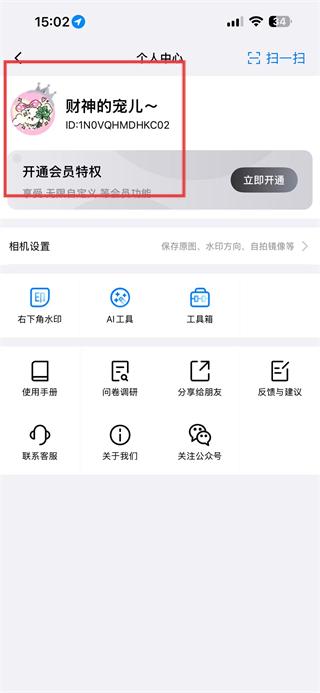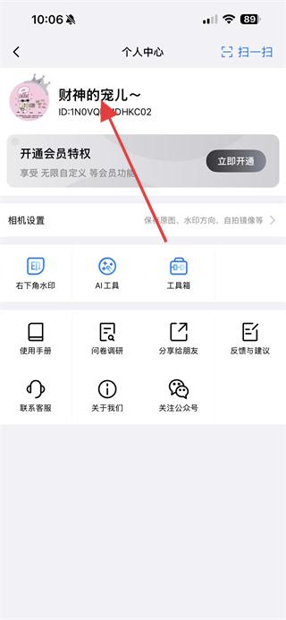 1、打开自定义水印相机app,点击左上角的头像区域,进入个人中心页面。