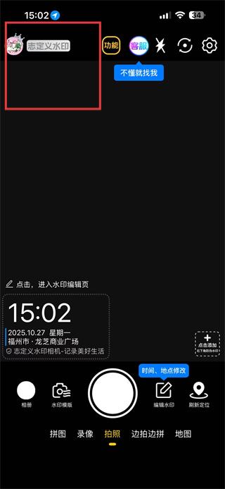 2.自定义水印内容:地点修改、心情编辑,你的水印你说了算;