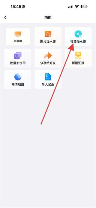 2、在功能选择页面点击视频加水印,进入视频添加页面。