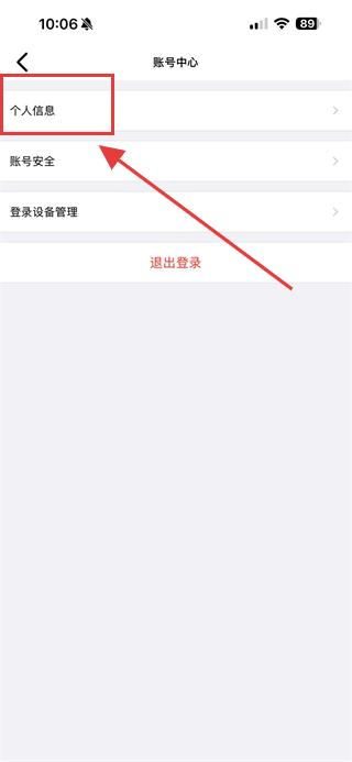 3、在账号中心页面中点击个人信息,进入个人信息编辑页面。