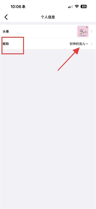 4、在个人信息编辑页面中找到昵称选项,点击后即可修改昵称名字。