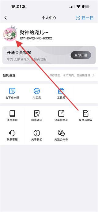1、点击自定义水印相机主界面左上角的图标,进入个人中心页面。