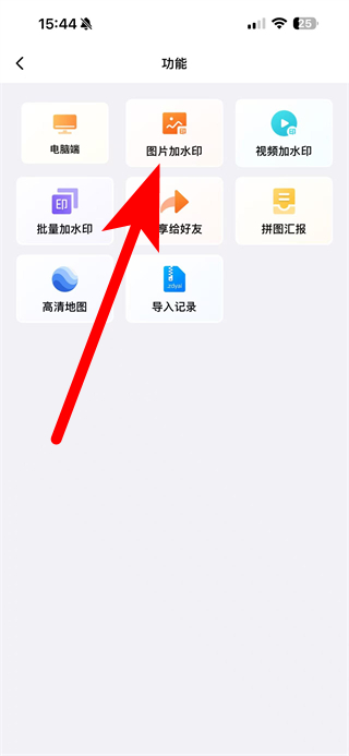 2、在功能选择页面点击图片加水印,进入图片添加页面。