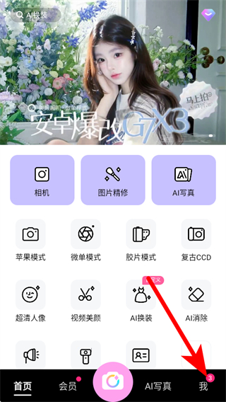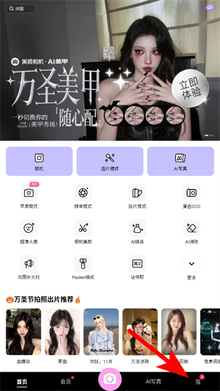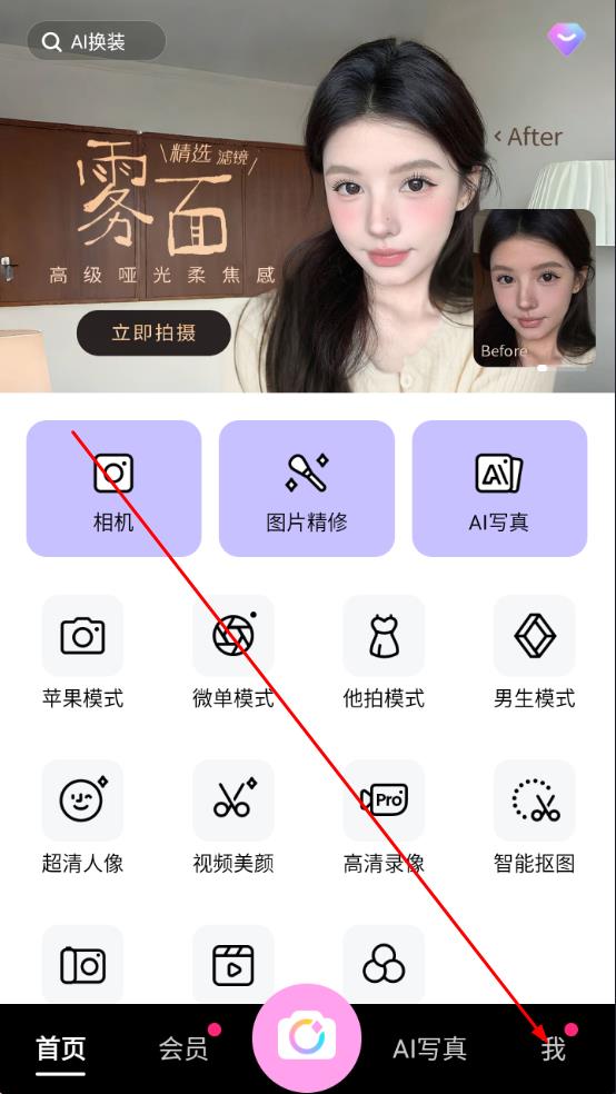 1、打开美颜相机应用,点击底部导航栏的我选项。