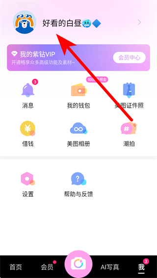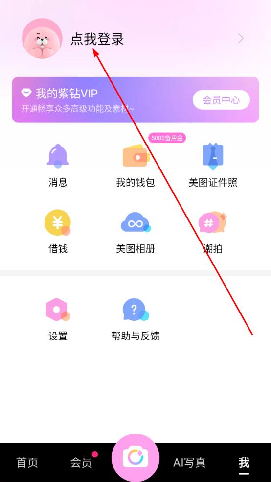 1、打开美颜相机APP,点击右下角我,进入个人页面。