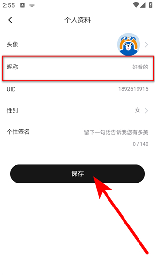 4、输入完成后,点击保存按钮,即可完成昵称修改。
