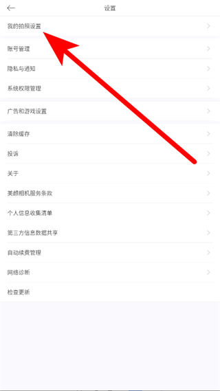 3、在设置页面点击我的拍照设置,进入我的拍照设置页面。